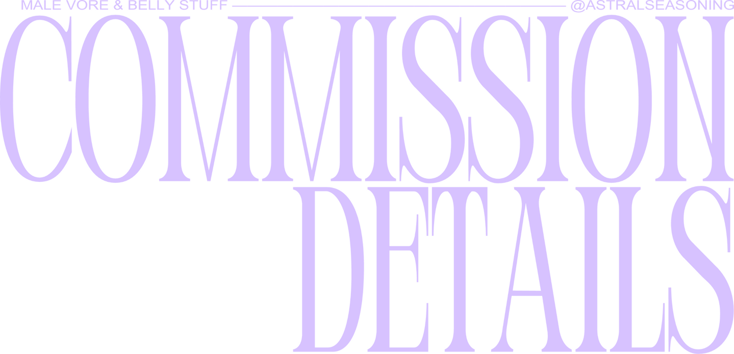 • Clients above 18 are allowed to order a commission.• M/M, oral stuffing/vore only.• I can only do minimal backgrounds (patterns, shapes, etc.).• I have the right to turn down a commission if it makes me uncomfortable or too difficult.• I have the rights to use the commission as a portfolio example.• Your commission is for personal use only. Commercial use for my art (prints, crypto, etc.) is not allowed.• Payment can be done through Paypal. Only upfront payments are accepted.• Before payment is complete I would send you an invoice through your email. Once you have verified the details in the invoice then payment should start.• Refunds are allowed before I start coloring or before I have sent the line art for revision.• If I ever find out that the commission breaks my guidelines, I will issue a refund and not continue on with the commission.